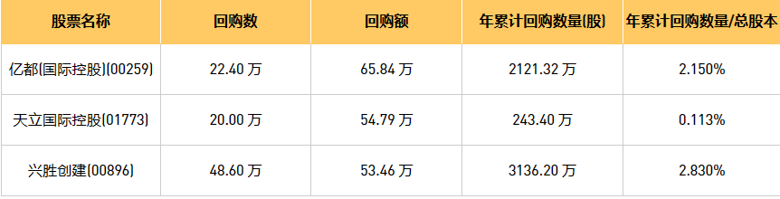 8月1日港股回购概况:兴胜创建(00896)、亿都(国际控股)(00259)、天立国际控股(01773)于2023年7月31日进行了回购。其中,回购金额最大的为亿都(国际控股)(00259),回购数量22.40 万,回购金额65.84 万元。