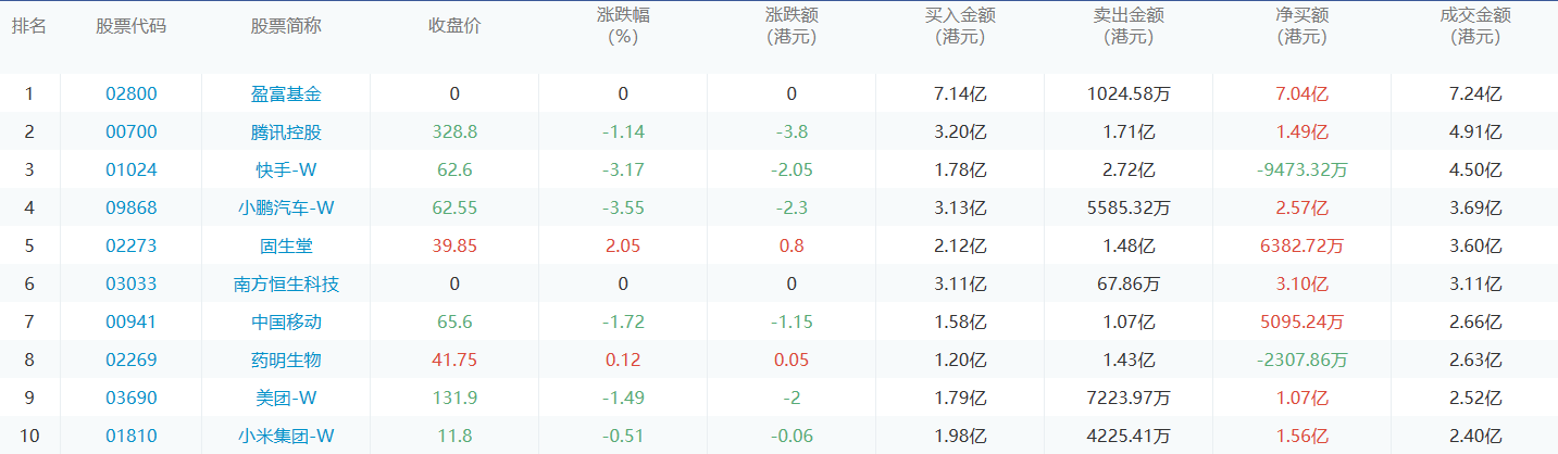 亚汇网8月16日港股通数据统计显示:盈富基金净买入额居首,达7.14亿港元,快手-w净卖出额居第一位。(亚汇网编辑:静香)