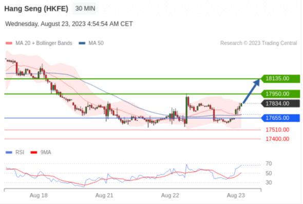 交易策略: 在 17655.00 之上,看涨,目标价位为 17950.00 ,然后为 18135.00 。