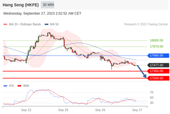 交易策略: 在 17680.00 之下,看跌,目标价位为 17350.00 ,然后为 17200.00 。