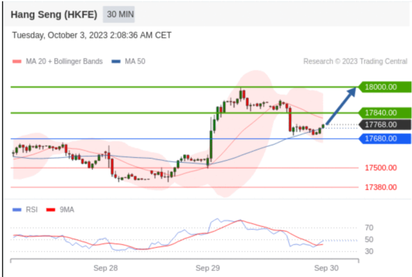 交易策略: 在 17680.00 之上,看涨,目标价位为 17840.00 ,然后为 18000.00 。