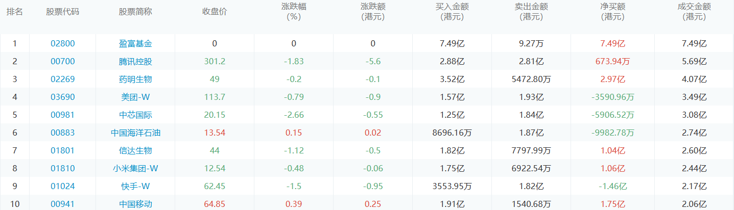 亚汇网10月16日港股通数据统计显示:盈富基金净买入额居首,达7.49亿港元,盈富基金净卖出额居第一位。