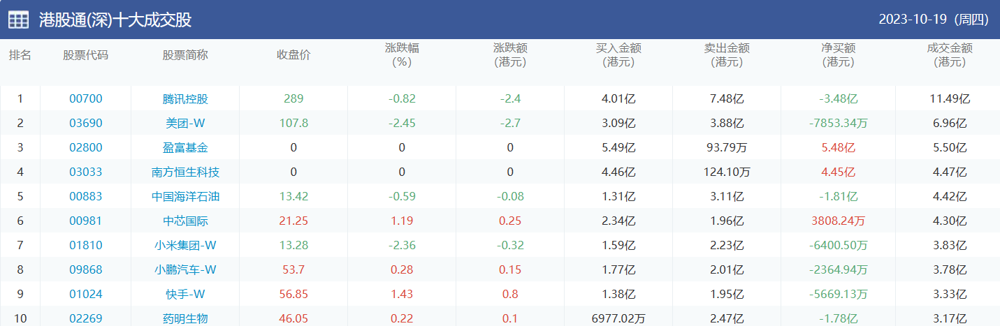 亚汇网实时数据统计:截至10月20日收盘,腾讯控股、美团-w、中国移动位居港股通(沪)成交前三,腾讯控股、美团-w、盈富基金位居股通(深)成交前三。