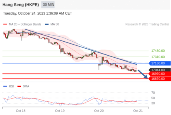 交易策略: 在 17180.00 之下,看跌,目标价位为 16970.00 ,然后为 16870.00 。