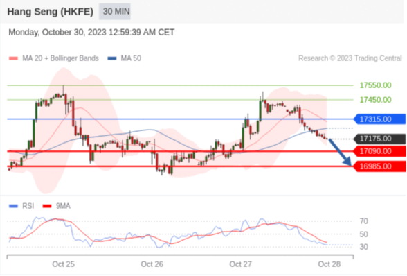交易策略: 在 17315.00 之下,看跌,目标价位为 17090.00 ,然后为 16985.00 。