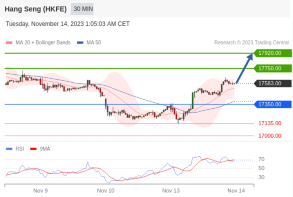 交易策略: 在 17350.00 之上,看涨,目标价位为 17750.00 ,然后为 17920.00 。