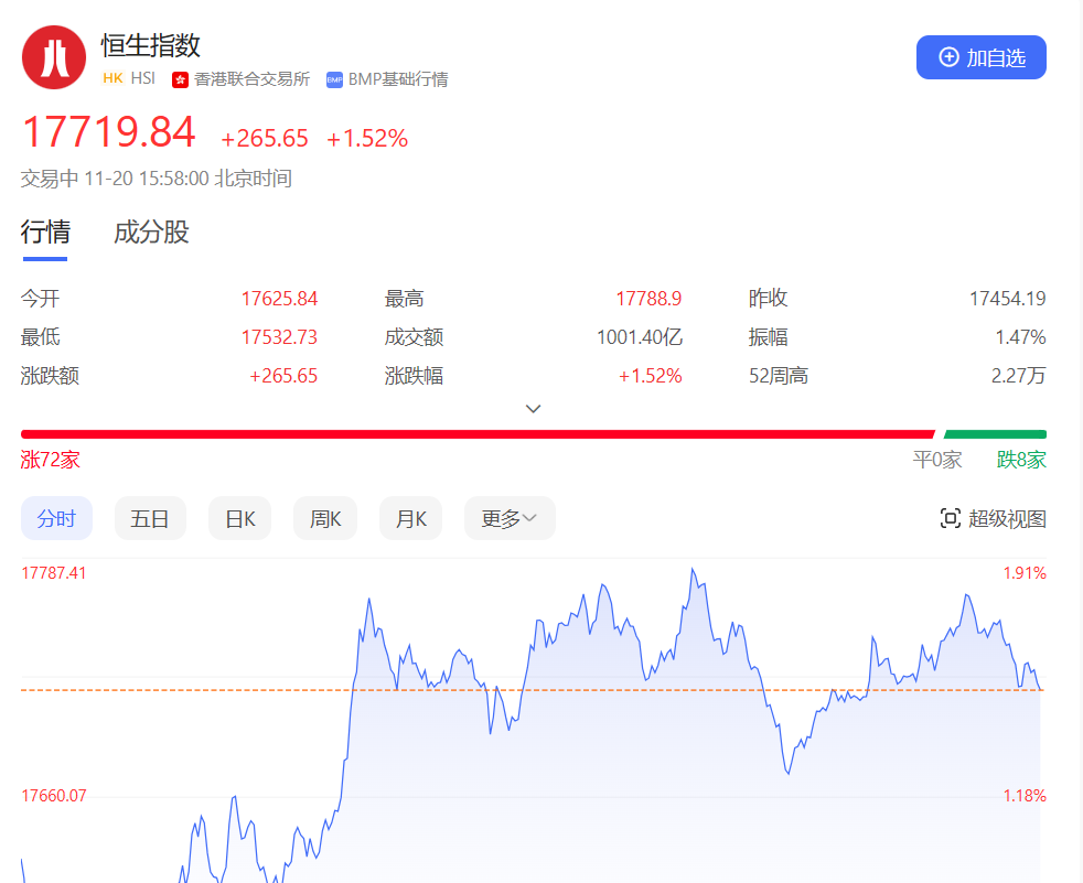 基于政策渐进推进和美债利率逐步回落的假设,该行认为港股处于逐步筑底过程,基准情形上行空间10-15%。短期内把握潜在修复式反弹。不过,在初步反弹之后,想要实现趋势反转以及更为持续的向上突破,更多的政策支持依然必不可少。