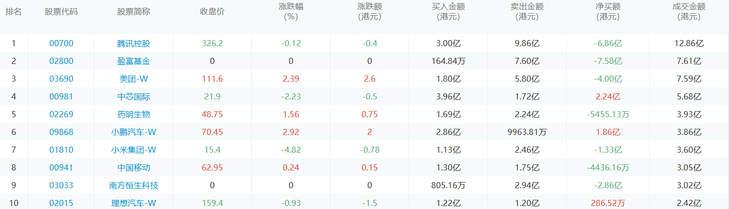 亚汇网11月21日港股通数据统计显示:中芯国际净买入额居首,达3.96亿港元,腾讯控股净卖出额居第一位。