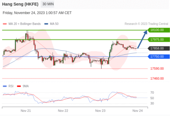 交易策略: 在 17750.00 之上,看涨,目标价位为 17975.00 ,然后为 18100.00 。
