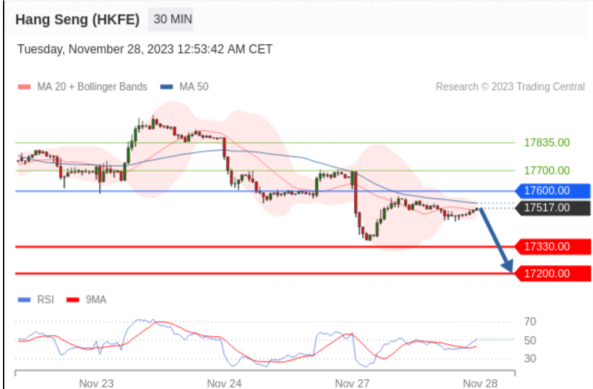 交易策略: 在 17600.00 之下,看跌,目标价位为 17330.00 ,然后为 17200.00 。