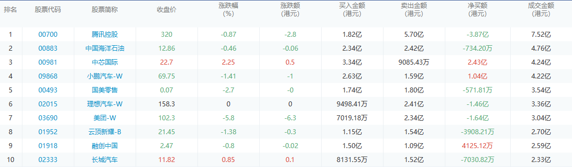 亚汇网11月28日港股通数据统计显示:中芯国际净买入额居首,达3.34亿港元,腾讯控股净卖出额居第一位。