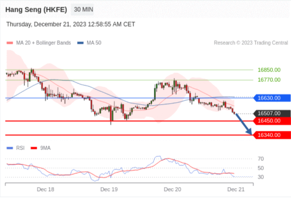 交易策略: 在 16630.00 之下,看跌,目标价位为 16450.00 ,然后为 16340.00 。