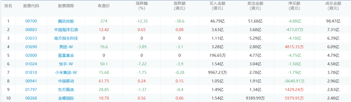 亚汇网12月25日港股通数据统计显示:腾讯控股净买入额居首,达46.79亿港元,腾讯控股净卖出额居第一位。