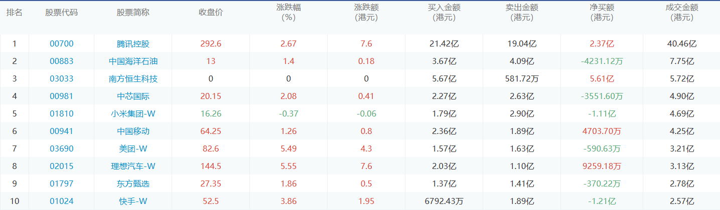 亚汇网12月28日港股通数据统计显示:腾讯控股净买入额居首,达21.42亿港元,腾讯控股净卖出额居第一位。
