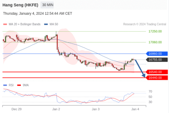 交易策略: 在 16860.00 之下,看跌,目标价位为 16540.00 ,然后为 16440.00 。