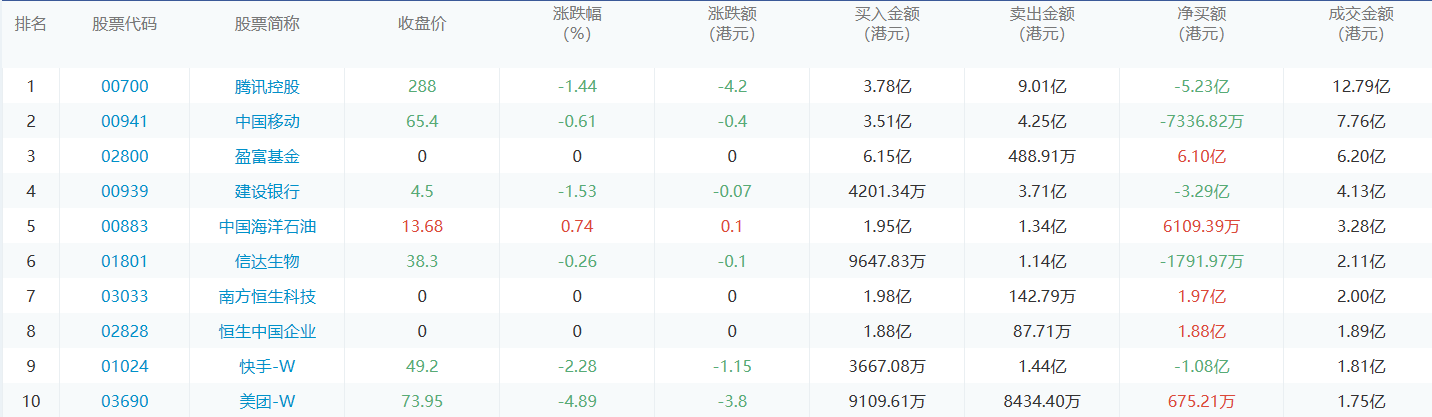 亚汇网1月8日港股通数据统计显示:盈富基金净买入额居首,达6.15亿港元,腾讯控股净卖出额居第一位。