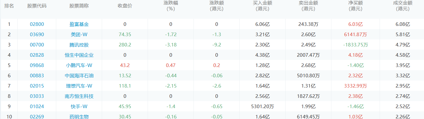 亚汇网1月16日港股通数据统计显示:盈富基金净买入额居首,达6.06亿港元,小鹏汽车-w净卖出额居第一位。