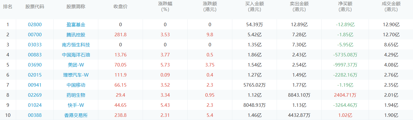 亚汇网1月24日港股通数据统计显示:腾讯控股净买入额居首,达5.42亿港元,盈富基金净卖出额居第一位。