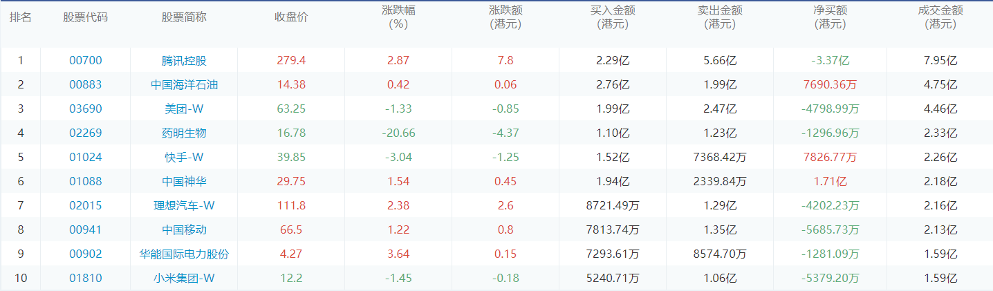 亚汇网2月2日港股通数据统计显示:中国海洋石油净买入额居首,达2.76亿港元,腾讯控股净卖出额居第一位。