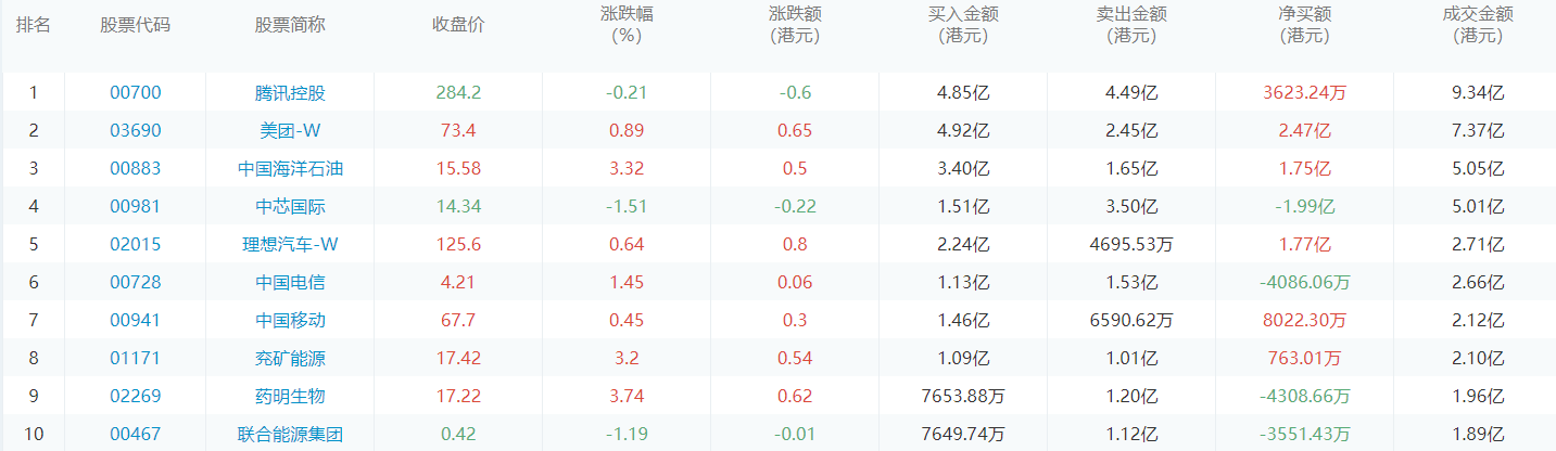 亚汇网2月20日港股通数据统计显示:美团-w净买入额居首,达4.92亿港元,腾讯控股净卖出额居第一位。