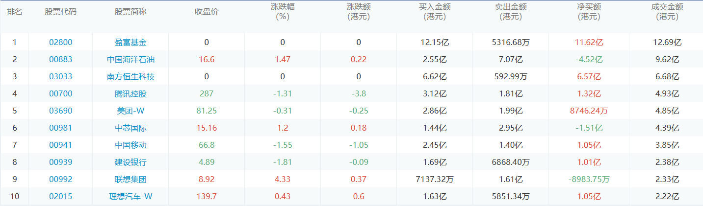 今日港股通数据一览:盈富基金净买入额居首额(2024/2/26)