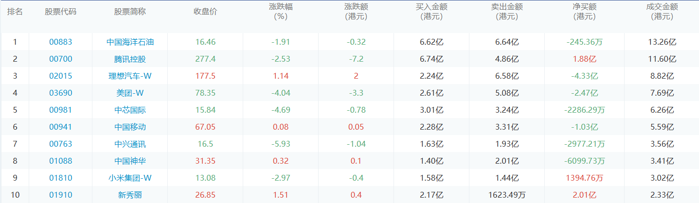 亚汇网2月28日港股通数据统计显示:腾讯控股净买入额居首,达6.74亿港元,中国海洋石油净卖出额居第一位。