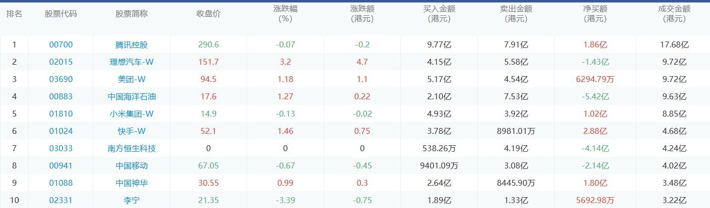 亚汇网3月13日港股通数据统计显示:腾讯控股净买入额居首,达9.77亿港元,腾讯控股净卖出额居第一位。