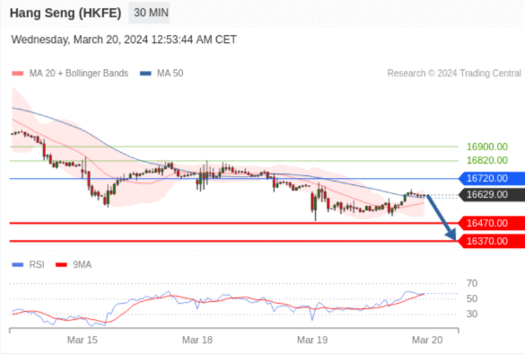 交易策略: 在 16720.00 之下,看跌,目标价位为 16470.00 ,然后为 16370.00 。