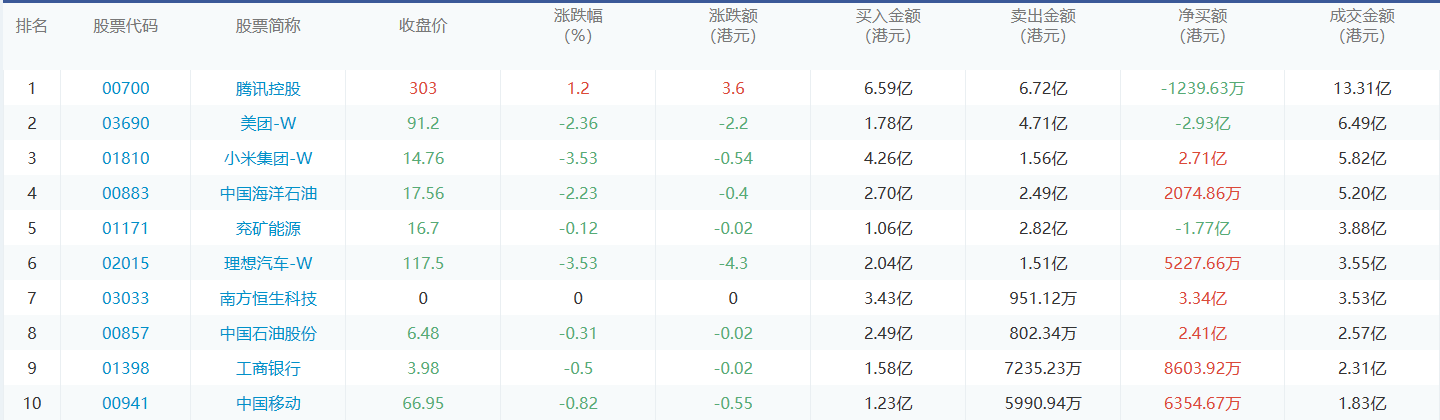 今日港股通数据一览:腾讯控股净买入额居首额(2024/3/27)
