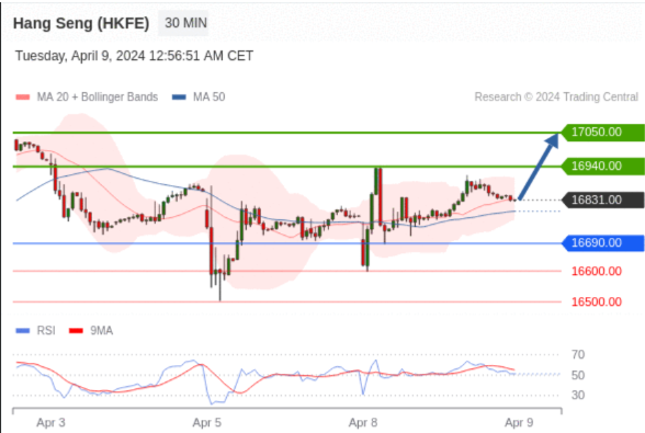 交易策略: 在 16690.00 之上,看涨,目标价位为 16940.00 ,然后为 17050.00 。