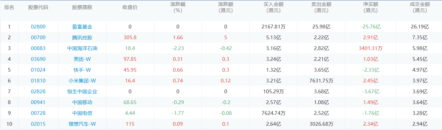 亚汇网4月18日港股通数据统计显示:腾讯控股净买入额居首,达5.13亿港元,盈富基金净卖出额居第一位。