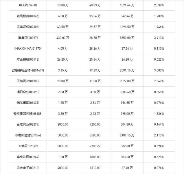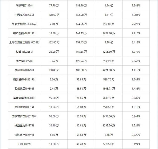 方正控股(00418)、摩比发展(00947)、时代电气(03898)、威高股份(01066)、清科创业(01945)、富智康集团(02038)、蒙牛乳业(02319)、昊海生物科技(06826)、信利国际(00732)、百宏实业(02299)、国泰君安国际(01788)、中远海控(0)、上海石油化工股份(00338)、归创通桥-B(02190)、中远海发(02866)、名创优品(09896)、旭日企业(00393)、友邦保险(01299)、瑞尔集团(06639)、维亚生物(01873)、中国宏桥(01378)、天鸽互动(01980)、嬴集团(00397)、阅文集团(00772)、玄武云(02392)、固生堂(02273)、周黑鸭(01458)、瑞声科技(02018)、太古地产(01972)、KEEP(03650)、IGG(00799)、太古股份公司A(00019)、思派健康(00314)、和誉-B(02256)、彩客新能源(01986)、欧康维视生物-B(01477)、骏杰集团控股(08188)、和铂医药-B(02142)、乐声电子(00213)、乐华娱乐(02306)、药师帮(09885)、太古股份公司B(00087)、IMAX CHINA(01970)、中国东方航空股份(00670)、连连数字(02598)、极兔速递-W(01519)、百胜中国(09987)、贝壳-W(02423)于2025年5月9日进行了回购。其中,回购金额最大的为中国宏桥(01378),回购数量1966.70 万,回购金额2.73 亿元。