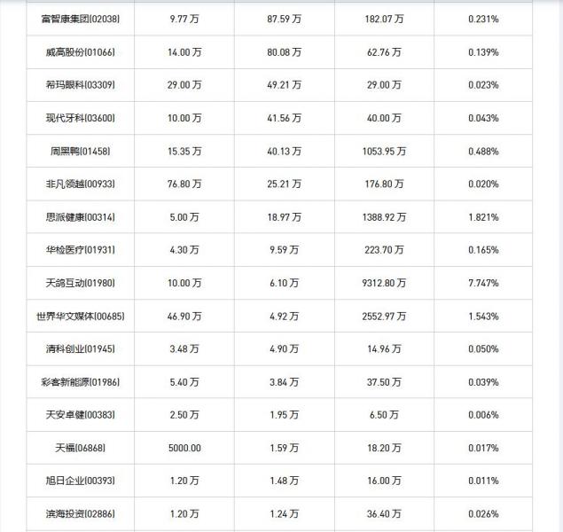 摩比发展(00947)、天安卓健(00383)、富智康集团(02038)、信利国际(00732)、现代牙科(03600)、清科创业(01945)、周黑鸭(01458)、威高股份(01066)、华检医疗(01931)、中远海发(02866)、友邦保险(01299)、滨海投资(02886)、天润云(02167)、蒙牛乳业(02319)、碧桂园服务(06098)、名创优品(09896)、腾讯控股(00700)、天鸽互动(01980)、天福(06868)、非凡领越(00933)、中国旭阳集团(01907)、世界华文媒体(00685)、希玛眼科(03309)、旭日企业(00393)、IGG(00799)、快手-W(01024)、彩客新能源(01986)、中国东方航空股份(00670)、乐华娱乐(02306)、极兔速递-W(01519)、药师帮(09885)、思派健康(00314)、和铂医药-B(02142)、中国恒有源集团(08128)于2025年6月4日进行了回购。其中,回购金额最大的为腾讯控股(00700),回购数量98.00 万,回购金额5.00 亿元。