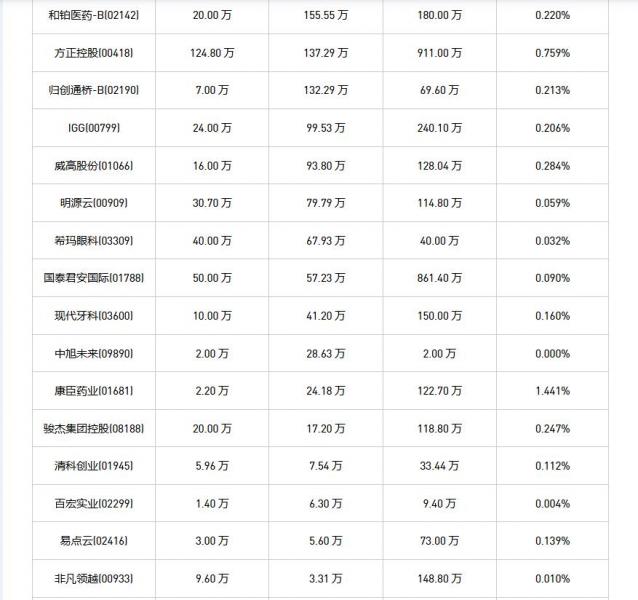 摩比发展(00947)、方正控股(00418)、信利国际(00732)、蒙牛乳业(02319)、清科创业(01945)、安德利果汁(02218)、现代牙科(03600)、中远海发(02866)、国泰君安国际(01788)、百宏实业(02299)、周黑鸭(01458)、碧桂园服务(06098)、归创通桥-B(02190)、腾讯控股(00700)、康臣药业(01681)、太平洋航运(02343)、威高股份(01066)、天福(06868)、旭日企业(00393)、复星医药(02196)、玄武云(02392)、固生堂(02273)、非凡领越(00933)、明源云(00909)、友邦保险(01299)、名创优品(09896)、中国旭阳集团(01907)、IGG(00799)、创新奇智(02121)、希玛眼科(03309)、中国东方航空股份(00670)、和铂医药-B(02142)、中旭未来(09890)、骏杰集团控股(08188)、易点云(02416)、中国恒有源集团(08128)于2025年6月19日进行了回购。其中,回购金额最大的为腾讯控股(00700),回购数量100.20 万,回购金额5.00 亿元。