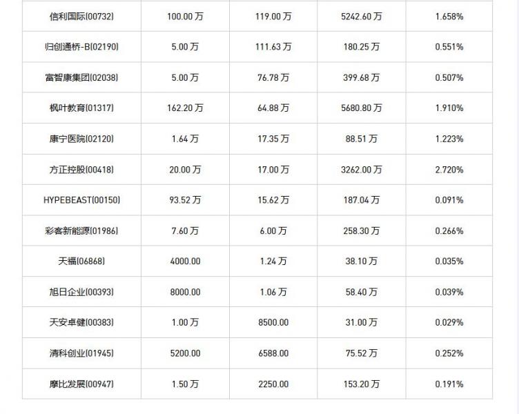 富智康集团(02038)、信利国际(00732)、摩比发展(00947)、方正控股(00418)、津上机床中国(01651)、蒙牛乳业(02319)、天福(06868)、清科创业(01945)、天安卓健(00383)、安东油田服务(03337)、腾讯控股(00700)、北森控股(09669)、金涌投资(01328)、()、HYPEBEAST(00150)、旭日企业(00393)、美高梅中国(02282)、永达汽车(03669)、威高股份(01066)、枫叶教育(01317)、恒生银行(00011)、归创通桥-B(02190)、康宁医院(02120)、彩客新能源(01986)、和誉-B(02256)、天立国际控股(01773)、IGG(00799)、中国宏桥(01378)于2025年8月28日进行了回购。其中,回购金额最大的为腾讯控股(00700),回购数量92.70 万,回购金额5.51 亿元。