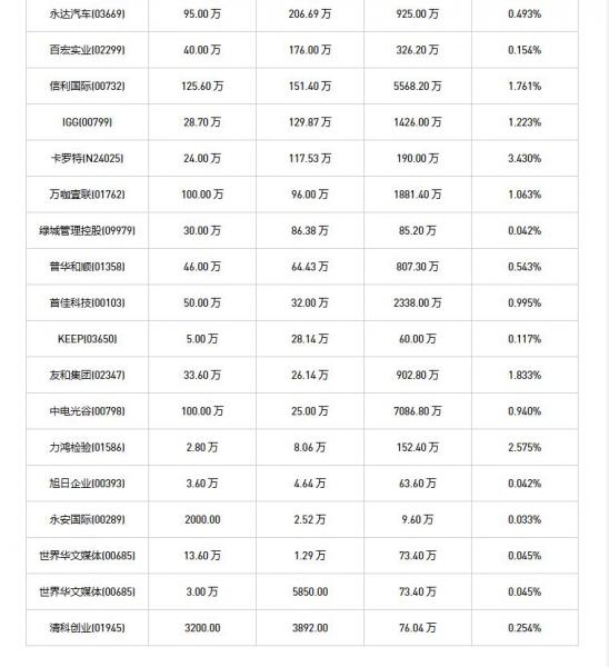 伟仕佳杰(00856)、永安国际(00289)、VITASOY INT'L(00345)、威高股份(01066)、网龙(00777)、首佳科技(00103)、津上机床中国(01651)、百宏实业(02299)、清科创业(01945)、万咖壹联(01762)、信利国际(00732)、四环医药(00460)、碧桂园服务(06098)、旭日企业(00393)、腾讯控股(00700)、恒生银行(00011)、中电光谷(00798)、力鸿检验(01586)、联易融科技-W(09959)、世界华文媒体(00685)、美高梅中国(02282)、友和集团(02347)、世界华文媒体(00685)、IGG(00799)、中集集团(02039)、蒙牛乳业(02319)、固生堂(02273)、KEEP(03650)、中旭未来(09890)、普华和顺(01358)、永达汽车(03669)、天立国际控股(01773)、绿城管理控股(09979)、卡罗特(N24025)、中国宏桥(01378)于2025年9月2日进行了回购。其中,回购金额最大的为中国宏桥(01378),回购数量3665.00 万,回购金额9.42 亿元。