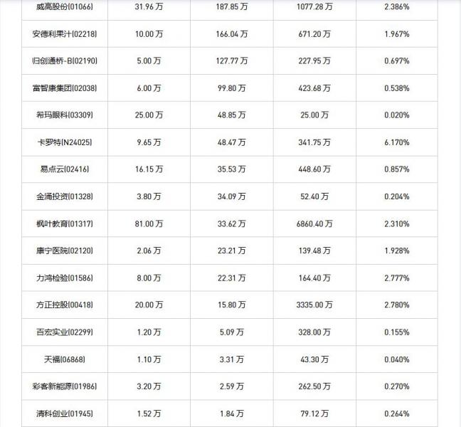 石四药集团(02005)、方正控股(00418)、蒙牛乳业(02319)、威高股份(01066)、卡罗特(N24025)、太平洋航运(02343)、天福(06868)、津上机床中国(01651)、信利国际(00732)、清科创业(01945)、百宏实业(02299)、富智康集团(02038)、枫叶教育(01317)、腾讯控股(00700)、旭日企业(00393)、恒生银行(00011)、归创通桥-B(02190)、酷派集团(02369)、金涌投资(01328)、希玛眼科(03309)、安德利果汁(02218)、美高梅中国(02282)、力鸿检验(01586)、固生堂(02273)、联易融科技-W(09959)、彩客新能源(01986)、易点云(02416)、康宁医院(02120)、天机控股(01520)、百胜中国(09987)、百胜中国(09987)、贝壳-W(02423)于2025年9月12日进行了回购。其中,回购金额最大的为腾讯控股(00700),回购数量85.20 万,回购金额5.50 亿元。
