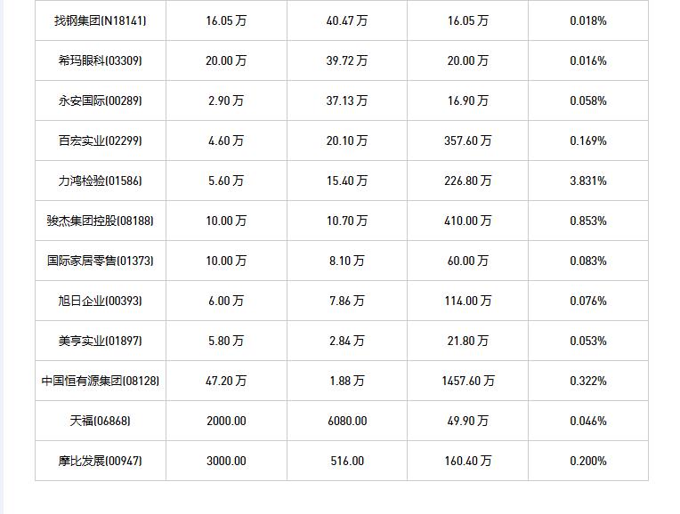 摩比发展(00947)、永安国际(00289)、蒙牛乳业(02319)、津上机床中国(01651)、天福(06868)、信利国际(00732)、锅圈(02517)、百宏实业(02299)、力鸿检验(01586)、国际家居零售(01373)、IGG(00799)、联易融科技-W(09959)、金涌投资(01328)、腾讯控股(00700)、首佳科技(00103)、希玛眼科(03309)、固生堂(02273)、旭日企业(00393)、和铂医药-B(02142)、美亨实业(01897)、绿城管理控股(09979)、九毛九(09922)、找钢集团(N18141)、骏杰集团控股(08188)、归创通桥-B(02190)、中电光谷(00798)、心玮医疗-B(06609)、云工场(N23027)、中国恒有源集团(08128)、中国宏桥(01378)于2025年10月9日进行了回购。其中,回购金额最大的为腾讯控股(00700),回购数量81.60 万,回购金额5.51 亿元。