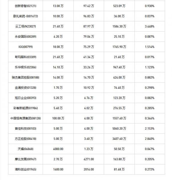 中国恒有源集团(08128)、摩比发展(00947)、方正控股(00418)、永安国际(00289)、天福(06868)、信利国际(00732)、VITASOY INT'L(00345)、心玮医疗-B(06609)、酷派集团(02369)、首佳科技(00103)、清科创业(01945)、碧桂园服务(06098)、创新奇智(02121)、旭日企业(00393)、歌礼制药-B(01672)、固生堂(02273)、联易融科技-W(09959)、乐华娱乐(02306)、归创通桥-B(02190)、和铂医药-B(02142)、锅圈(02517)、金涌投资(01328)、骏杰集团控股(08188)、IGG(00799)、首程控股(00697)、希玛眼科(03309)、九毛九(09922)、小米集团-W(01810)、绿城管理控股(09979)、永达汽车(03669)、康宁杰瑞制药-B(09966)、医渡科技(02158)、云工场(N23027)、彩客新能源(01986)、中电光谷(00798)于2025年10月13日进行了回购。其中,回购金额最大的为小米集团-W(01810),回购数量400.00 万,回购金额1.97 亿元。
