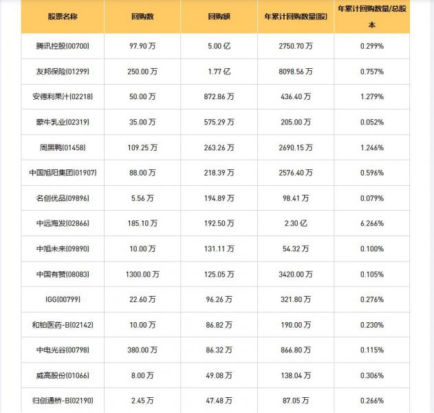 06月26日港股回购概况: 摩比发展(00947)、陆氏集团(越南)(00366)、蒙牛乳业(02319)、安德利果汁(02218)、威高股份(01066)、清科创业(01945)、嬴集团(00397)、中远海发(02866)、中国有赞(08083)、腾讯控股(00700)、周黑鸭(01458)、世界华文媒体(00685)、友邦保险(01299)、旭日企业(