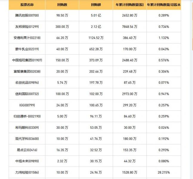 06月25日港股回购概况: 摩比发展(00947)、富智康集团(02038)、信利国际(00732)、安德利果汁(02218)、清科创业(01945)、力鸿检验(01586)、百宏实业(02299)、蒙牛乳业(02319)、天福(06868)、名创优品(09896)、腾讯控股(00700)、友邦保险(01299)、归创通桥-B(02190)、旭日企业(00393)