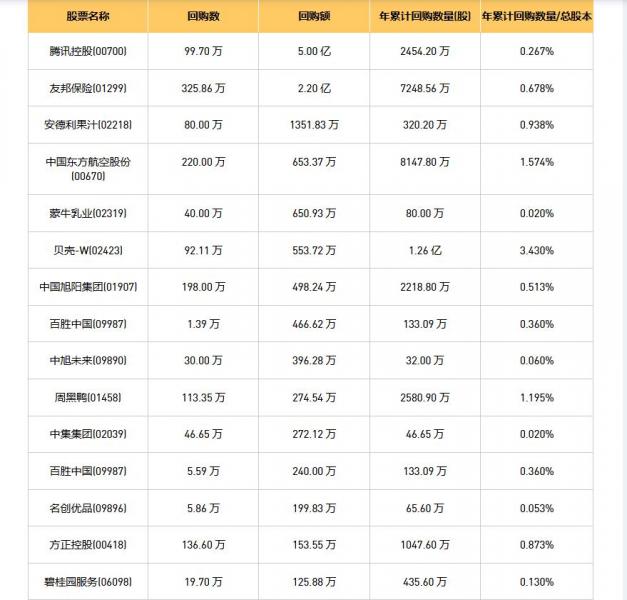 06月23日港股回购概况: 摩比发展(00947)、安德利果汁(02218)、蒙牛乳业(02319)、信利国际(00732)、中远海发(02866)、威高股份(01066)、雅生活服务(03319)、友邦保险(01299)、周黑鸭(01458)、名创优品(09896)、天福(06868)、腾讯控股(00700)、方正控股(00418)、康臣药业(01681)、