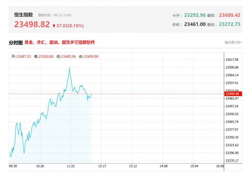 上午盘面: 因周末中东局势升级影响,港股三大指数低开,盘中持续回升均转涨,目前来看市场韧性十足。截止午盘,恒生指数、国企指数小幅下跌0.13%及0.11%,恒生科技指数平收。盘面上,大型科技股部分转涨,快手涨1.33%,小米飘红,阿里巴巴、京东、腾讯仍旧跌超1%;受益中东局势升级影响的板块涨势活跃,尤其是港