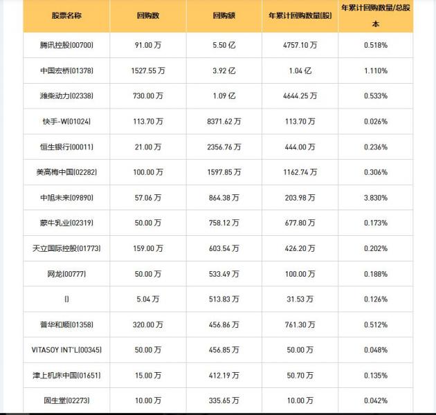 09月11日港股回购概况: 方正控股(00418)、信利国际(00732)、天福(06868)、卡罗特(N24025)、津上机床中国(01651)、力鸿检验(01586)、希玛眼科(03309)、太平洋航运(02343)、中旭未来(09890)、蒙牛乳业(02319)、中集集团(02039)、酷派集团(02369)、旭日企业(00393)、世界华文媒体(00685)、归创 通桥-B(02190)、