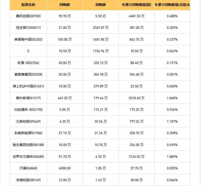 09月01日港股回购概况: 富智康集团(02038)、摩比发展(00947)、蒙牛乳业(02319)、信利国际(00732)、旭日企业(00393)、网龙(00777)、()、归创通桥-B(02190)、清科创业(01945)、津上机床中国(01651)、天福(06868)、中国宏桥(01378)、腾讯控股(00700)、方正控股(00418)、恒生银行(00