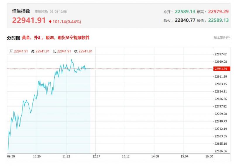 上午盘面: 港股上午盘三大指数低开高走,恒生科技指数盘中涨幅近2%,午间收涨1.56%,恒生指数、国企指数分别上涨1.1%及1.48%,恒指有望重回23000点。盘面上,作为市场风向标的大型科技股集体由跌转涨助力市场上行,小米涨超3%,美团涨2.7%,阿里巴巴、京东、快手涨超1%,百度逆势下跌超2%;“一揽子金融政策”集
