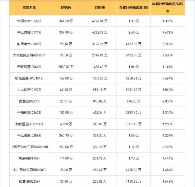 05月07日港股回购概况: 摩比发展(00947)、归创通桥-B(02190)、国泰君安国际(01788)、时代电气(03898)、清科创业(01945)、信利国际(00732)、威高股份(01066)、上海石油化工股份(00338)、百融云-W(06608)、蒙牛乳业(02319)、昊海生物科技(06826)、天福(06868)、四环医药(00460)、思派健