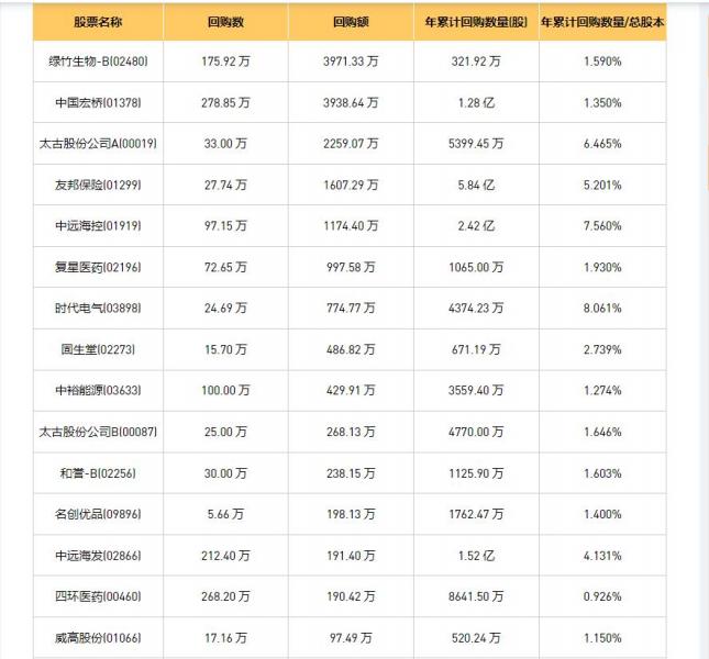 05月05日港股回购概况: 希玛眼科(03309)、国泰君安国际(01788)、威高股份(01066)、亚洲金融(00662)、时代电气(03898)、信利国际(00732)、清科创业(01945)、百宏实业(02299)、复星医药(02196)、百融云-W(06608)、四环医药(00460)、雅生活服务(03319)、澳优(01717)、天福(06868)、名