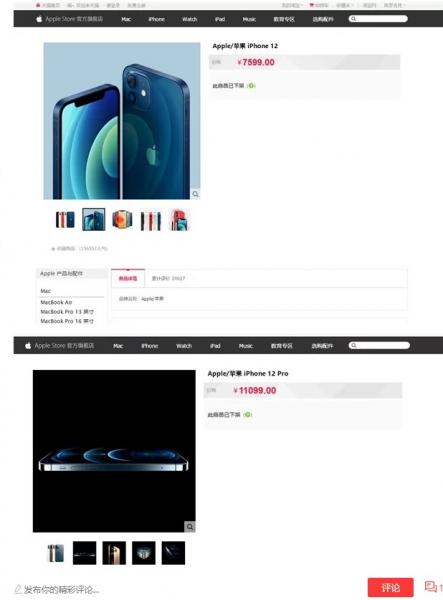 从目前苹果天猫旗舰显示的情况看,iPhone 12和iPhone 12 Pro的确被下架了,至于什么原因还不清楚。