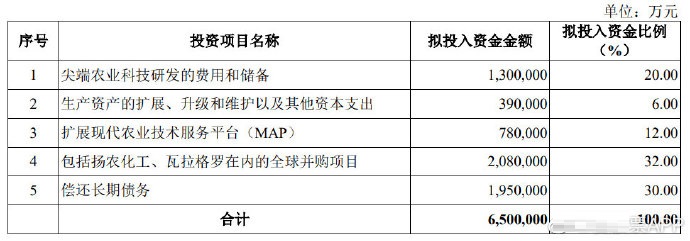 7月2日晚间,从上海证券交易所官网获悉,先正达在科创板上市的申请已获受理,并于当晚披露了招股说明书申报稿。根据招股说明书,先正达拟发行不超过27.86亿股(行使超额配售选择权之前),占发行后总股本的比例不超过20%。发行后总股本不超过139.31亿股(行使超额配售选择权之前)。先正达拟投入650亿元募集资金用于募投项目。